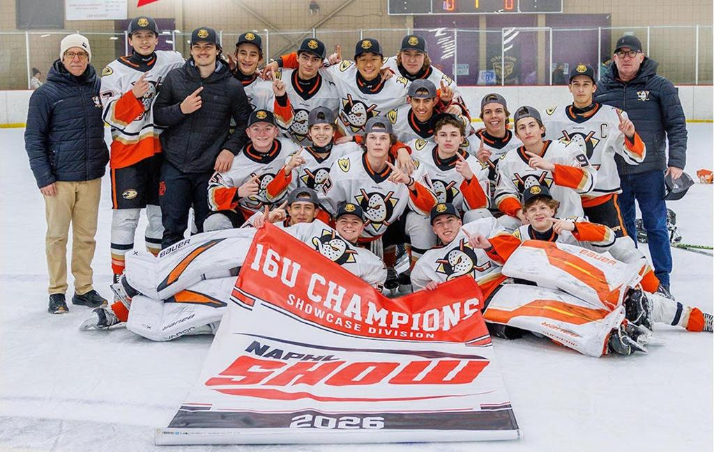 The Anaheim Jr. Ducks 16U AA team captured a North American Prospects Hockey League Tier II showcase championship on Jan. 19. (Photo courtesy of the NAPHL)